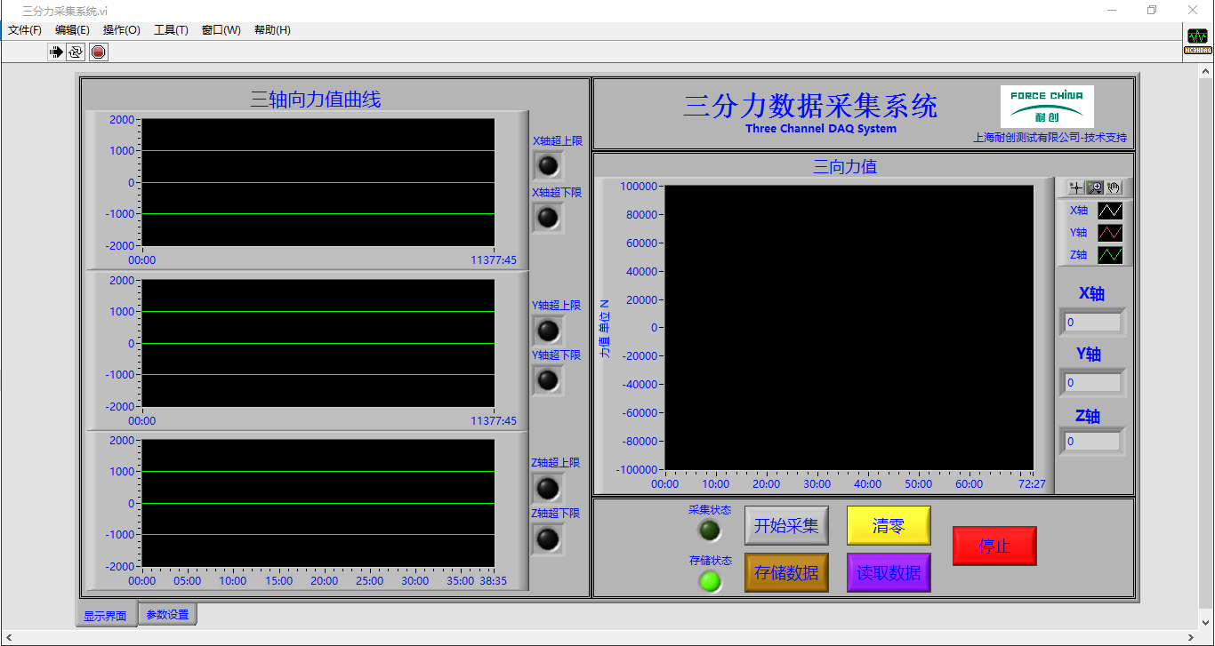 界面如下:包含單通道,三通道(配三分力傳感器),六通道(配六維力傳感器)以及多通道數據采集軟件;