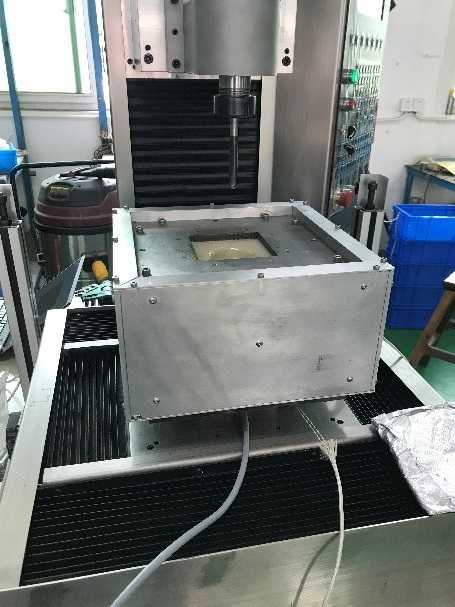 設備主體包含一個四軸聯動控制平臺和一個加熱爐以及其他固件,加熱爐對被塑形材料【有機玻璃】進行加熱,內部溫度可控制在180~250℃,這時控制平臺和刀具聯動,沿著設計好的運動軌跡對被加熱的玻璃纖維材料進行塑形;