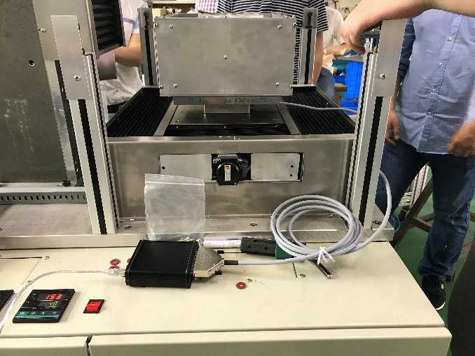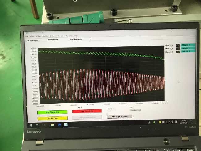 傳感器被安裝在加熱爐底部的固支平臺上,作為測試部件串聯在結構中,平臺下方是三軸聯動機床,測試過程中,我們對傳感器的受熱溫度進行監測,發現傳感器上方安裝板的溫度在40℃左右,這個溫度并不影響傳感器的使用;
